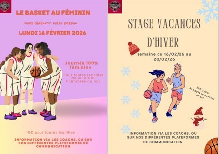 Nous organisons un stage de basket la première semaine des vacances scolaires, du 16 février au 20 février!